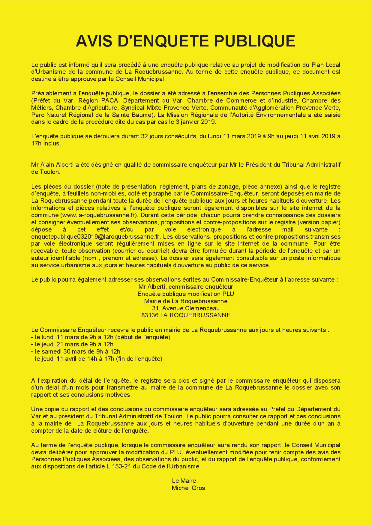 Veuillez trouver ci-dessous le registre d'enquête publique concernant la modification du PLU