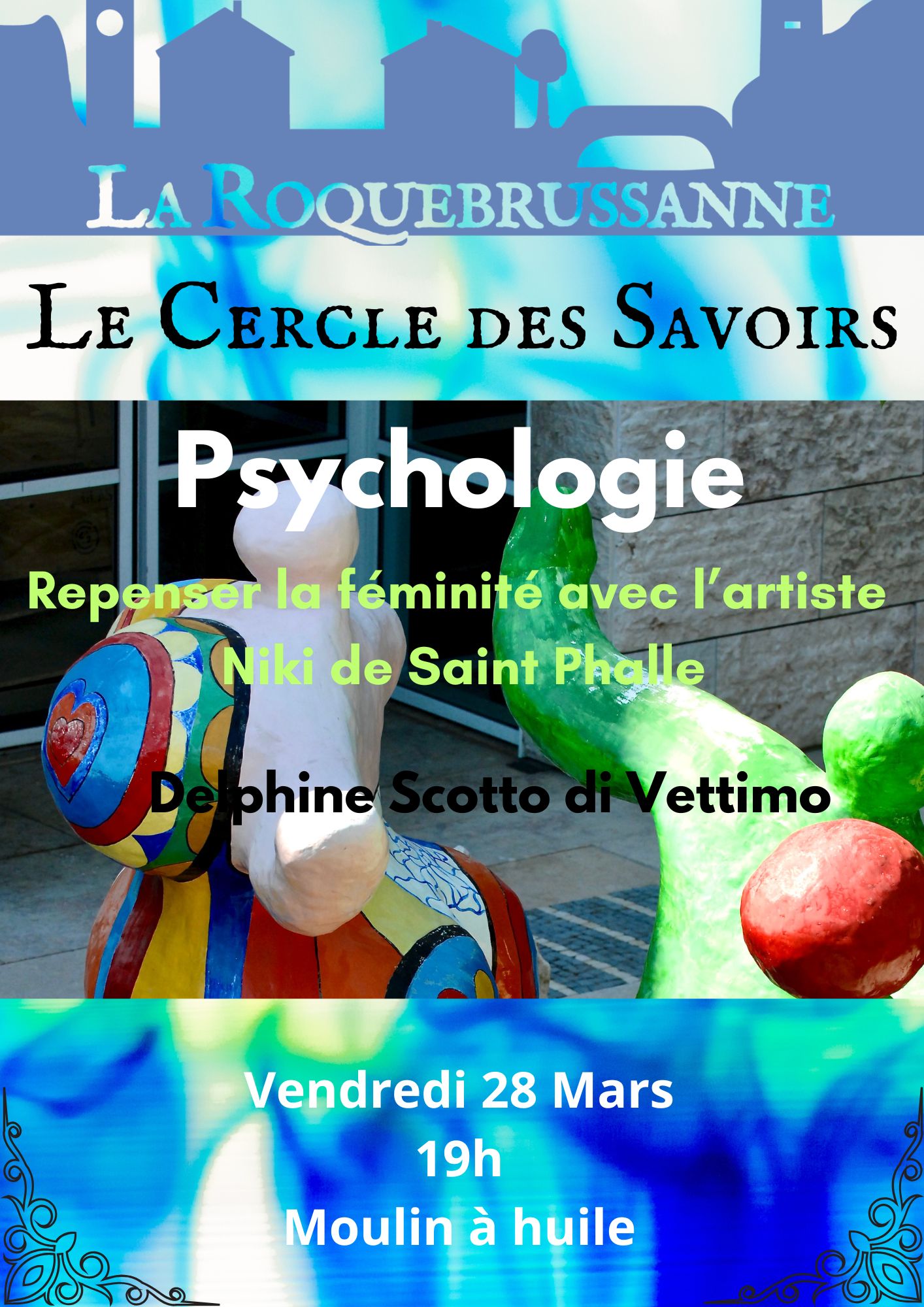 Vendredi 28 mars à 19h au Moulin à huile nous aurons le plaisir d'accueillir la psychologue Delphine Scotto di Vettimo pour sa conférence "Repenser la féminité avec Niki de Saint Phalle". Entrée libre