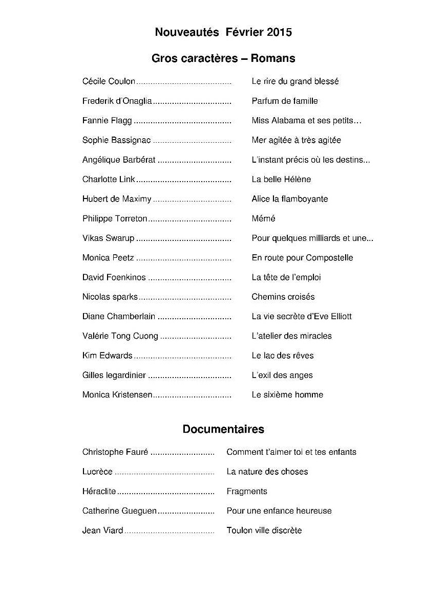 Veuillez trouver ci-dessous les nouveautés Adultes et Jeunesse du mois de Février, bonnes lectures!